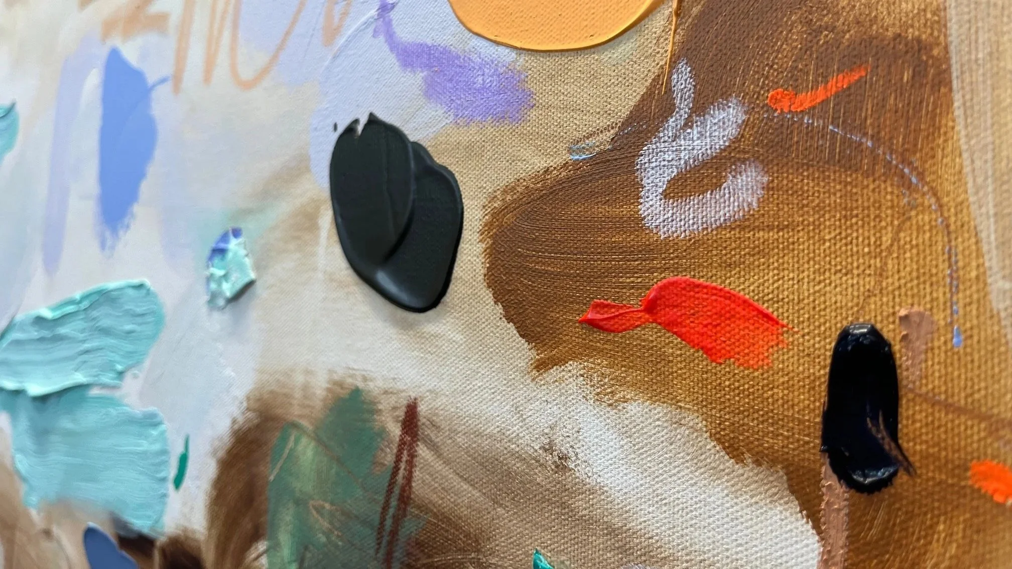 Inner Landscapes explores emotional terrains through layered oil stick and acrylic. Rich textures, fragments of dried paint from past works, and liberated gestures merge into abstract landscapes shaped by feeling rather than form.