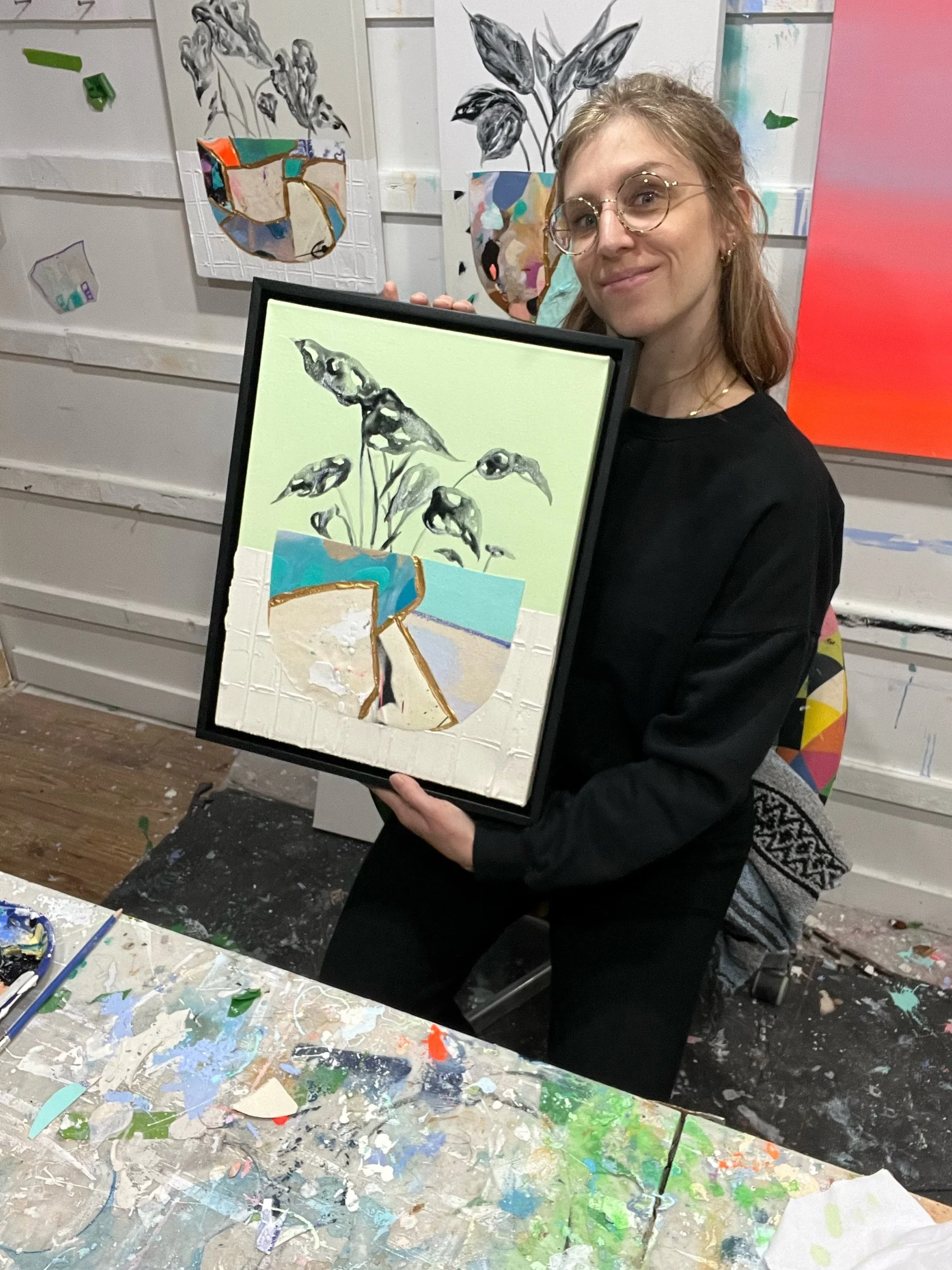 Acrylic , pastel and plaster on 2inch think Canvas.